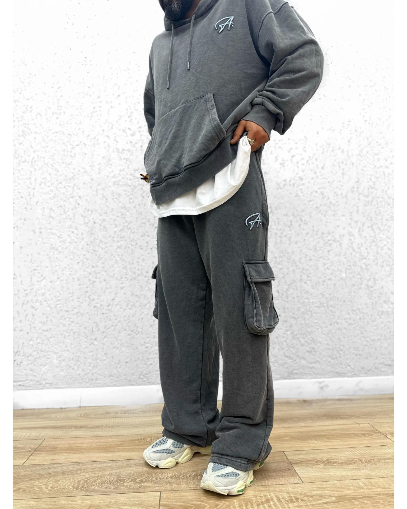 PANTOLON BELİ LASTİKLİ VE KORDONLU KARGO BAGGY MODELİDİR..